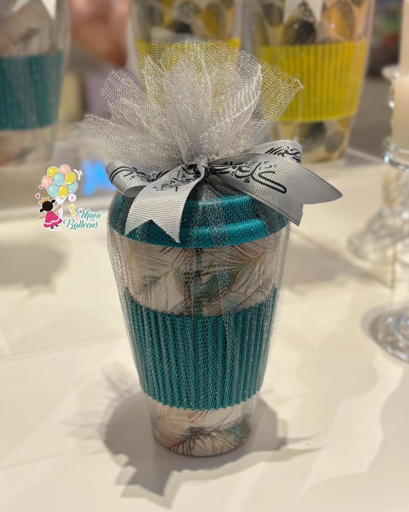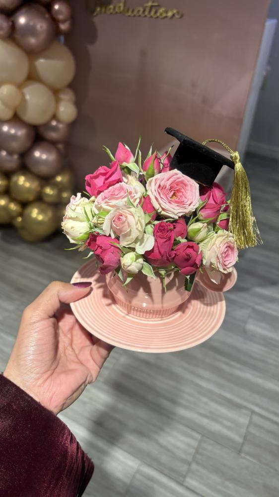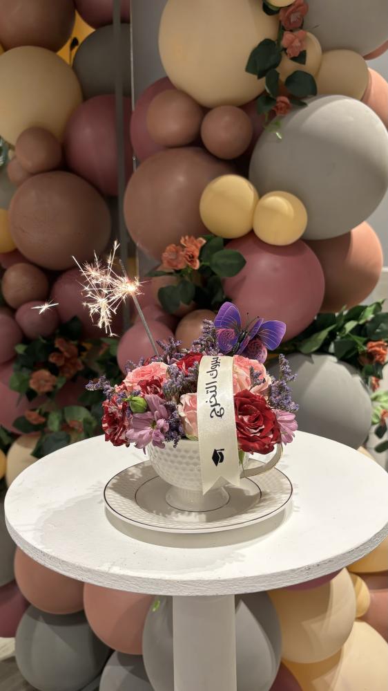 كوب سيراميك مع صحن وورد
