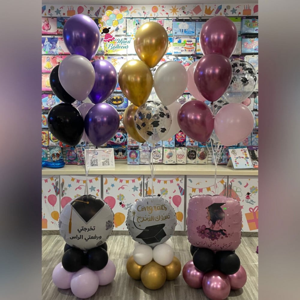 استاند التخرجمتوفر بعدة خيارات وبألوان مختلفةارتفاع الاستاند : 170 سم تقريباًملاحظة :نضمن لكم بقاء بالونات الهيليوم 3 أيام في الجو 🎈.