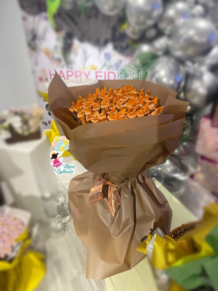 بوكيه حلاوة بقرة 200 حبةخيار جميل لتقديم حلويات العيد للأطفال والكبارمناسب جدًا للتوزيع في صلاة العيد او للإهداء