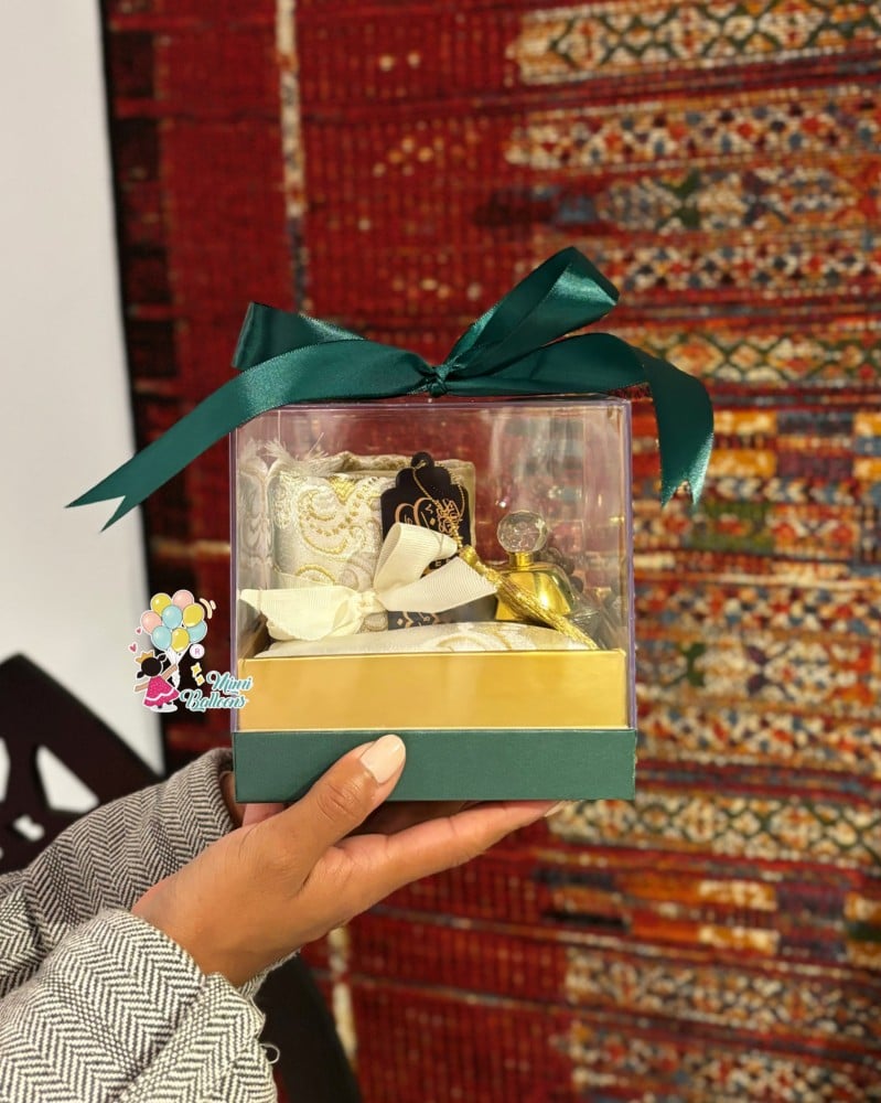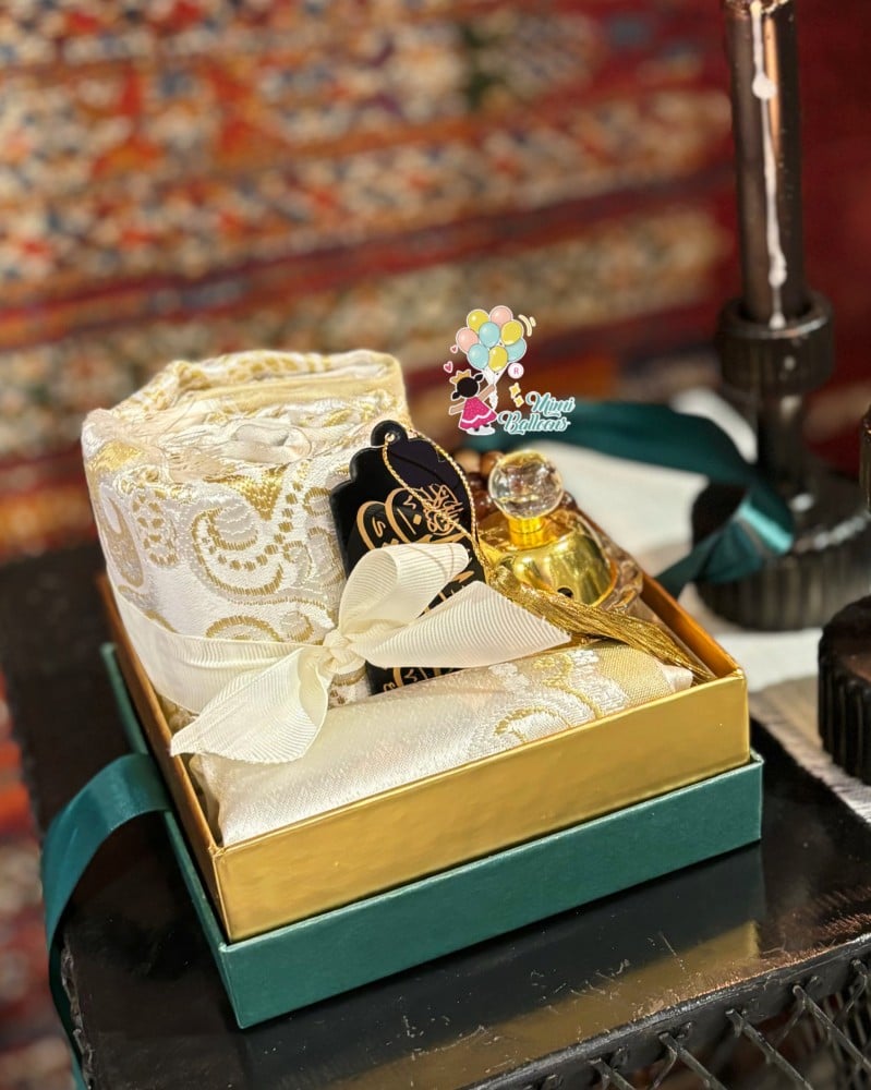 سجادة حريرية مع حقيبة صناعة سورية - فاصل مصحف - مبخرة كرستال - قطع من عود البيت من الماجد - مسبحة