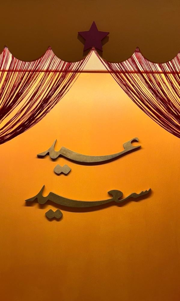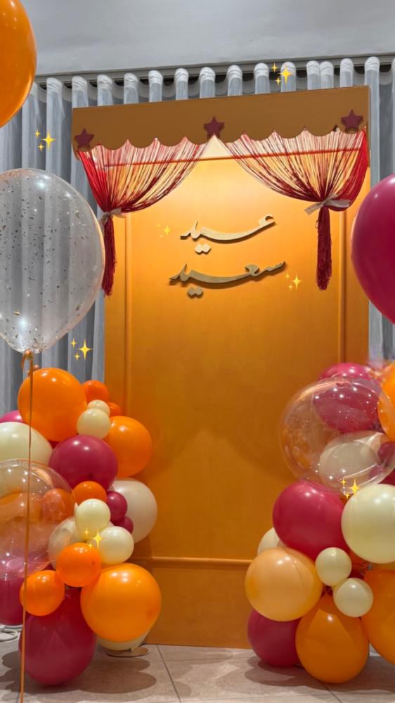 ديكور عيد برتقالي وفوشيخلفية ارتفاع مترين وعرض متر مع بالوناتيمكن اختيار عبارات حسب الطلبالمقاس ٢ متر ارتفاع × ١ متر عرضالسعر ايجار لمدة يوم واحد