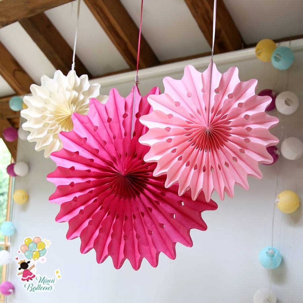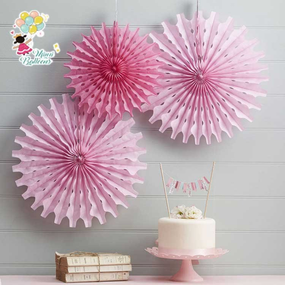 مراوح وردي فاتحالعدد والمقاس : 3 قطع1 × 30سم1 × 40سم1 × 50سمقد يختلف اللون قليلاً في الواقعبعض الصور توضح الخيارات المتعددة في التركيب واقتراحات لتنسيق الألوان