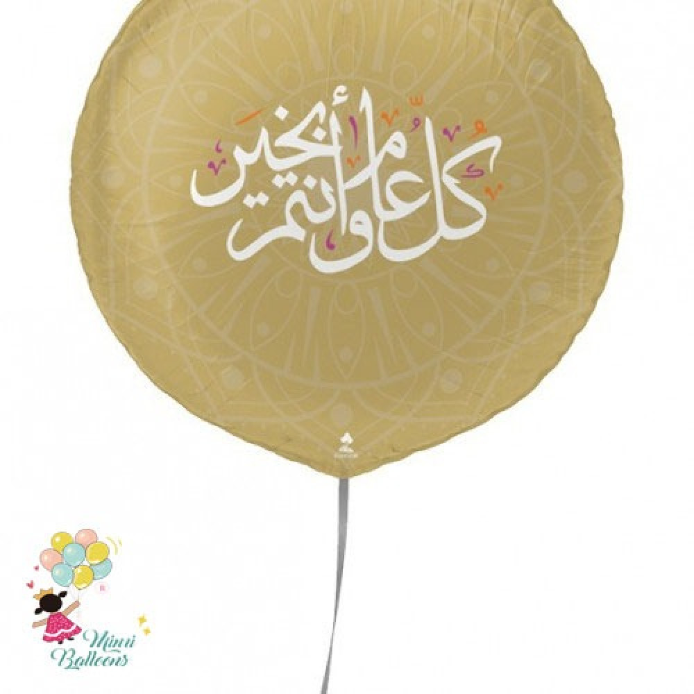 بالون كل عام وأنتم بخير ذهبي مع قاعدة