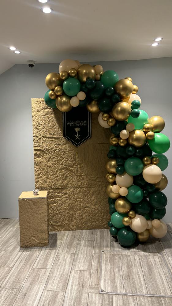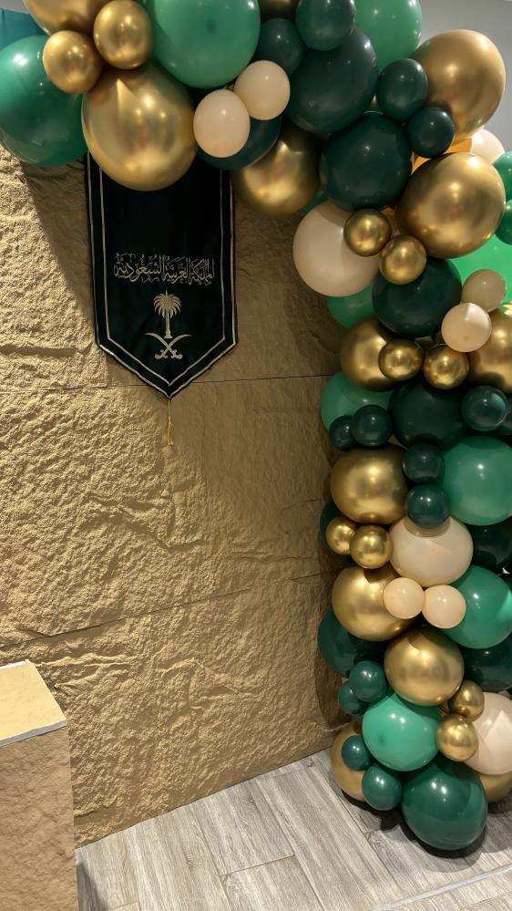 ديكور اليوم الوطني بالونالمقاس = مترين x متر ونصفالديكور يشمل الخلفية والملحقات الموضحة في الصورةيمكن إضافة طاولة مع الديكوريمكن إضافة شعار الجهةالديكور ايجار والسعر يشمل الايجار من يوم وحتى ٣ أيام